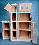 #J-M907 or FO J-M907, 7 rooms, when not using 2 built-in room dividers (on first and second levels). Rooms are Deeper to accommodate 9 rooms of furniture. Dimensions: 24 "W x 16 1/2"D x 38 1/2"H, in 1" Scale, 3/8" thick. Weight: 36 lbs. (with Free Shipping in USA). Clapboards Milled directly